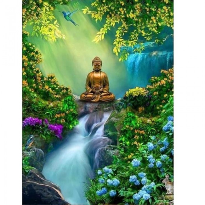 Buddha vid vattenfall